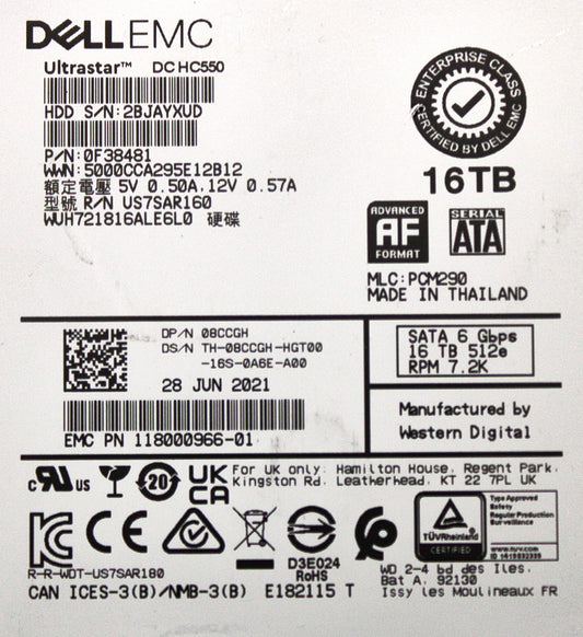 Dell 8CCGH 16TB 7.2K SATA 3.5 6G WUH721816AL6L0 / 0F38481